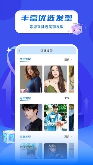 提供了发型图库,包括女士发型、男士发型以及儿童发型,让你快速找到自己想要的发型。