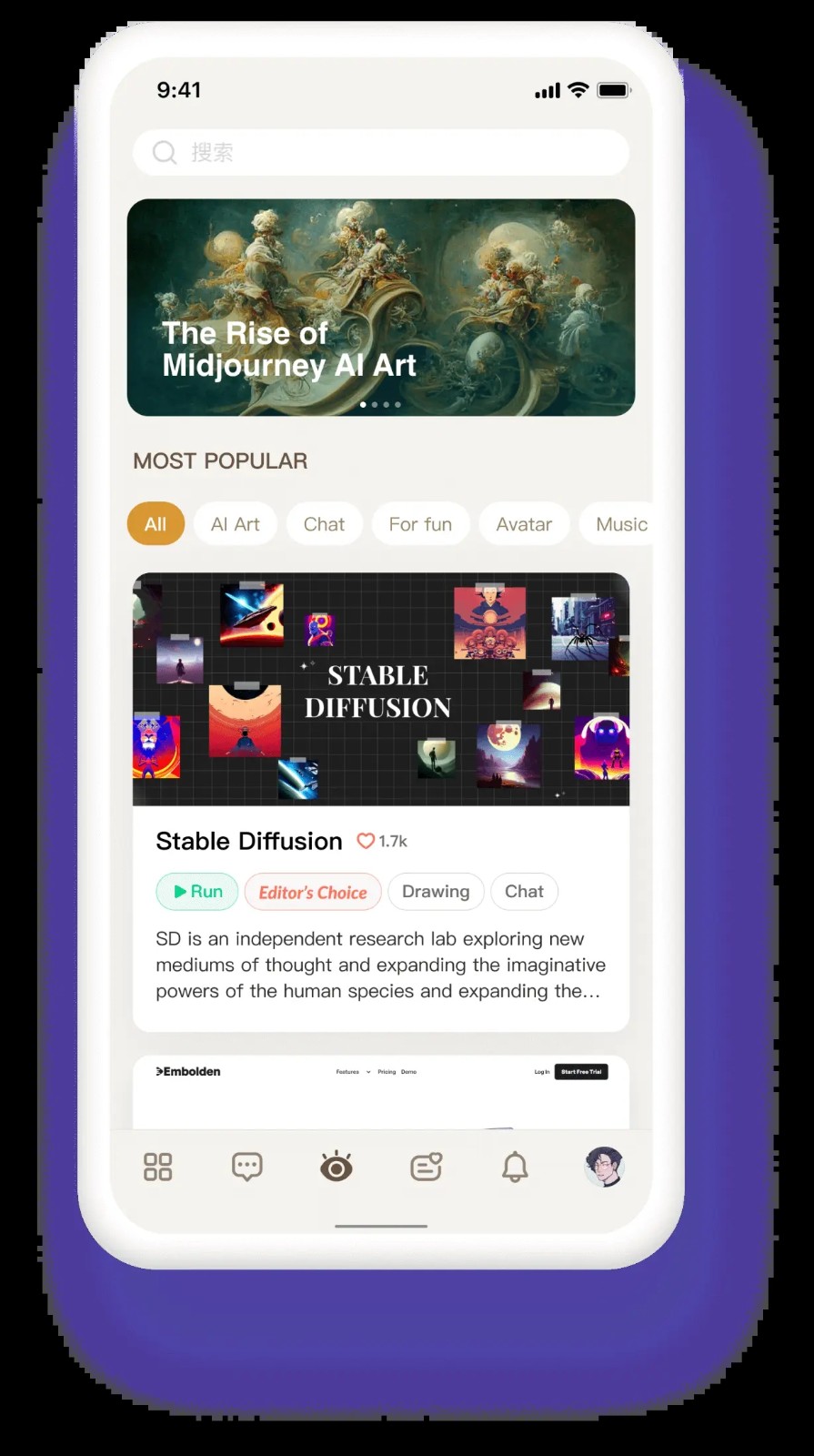 1.强大的AI绘画,利用尖端的神经网络AI艺术技术,利用稳定扩散创建高质量的图像设计工具。