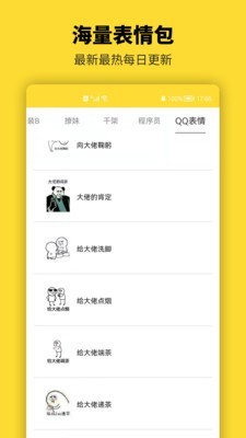 1、所有热门表情包一应俱全,可定制同款熊猫、漫画表情,并可一键分享给微信QQ好友。