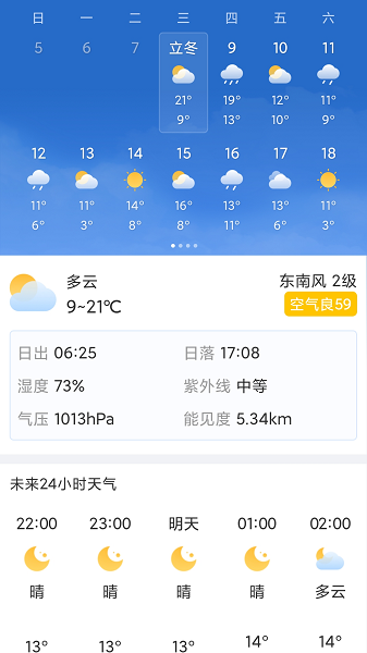 可以查看未来24小时内每个小时的天气变化情况,有助于应对早晚温差大的情况。