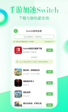 游戏加速:提供一键加速功能,加速全球上万款热门游戏,解决网络卡顿、延迟、加载慢等问题。