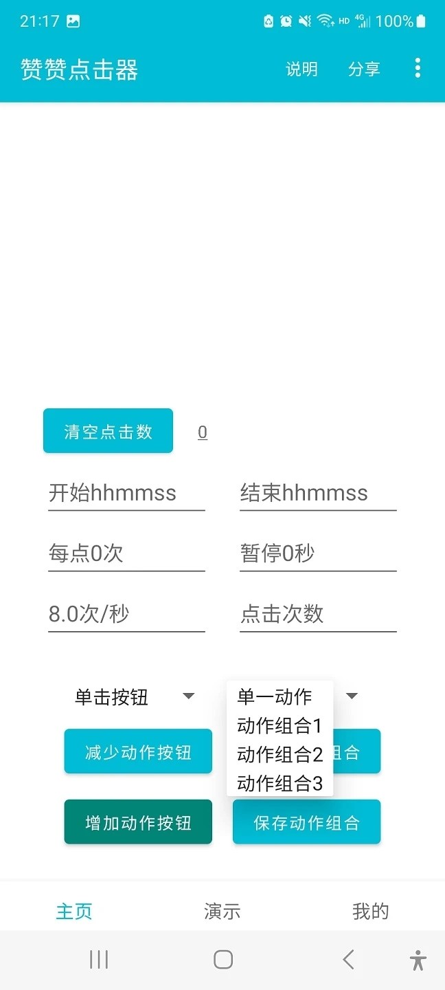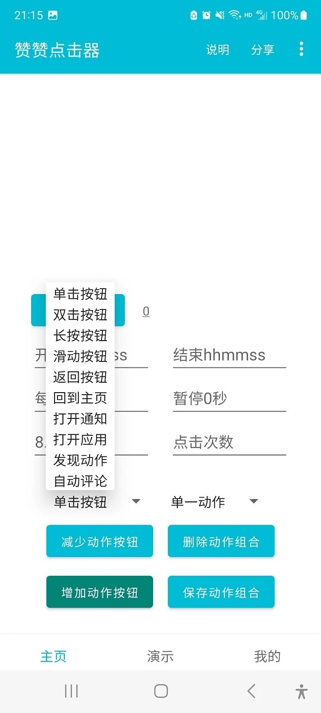 赞赞点击器app是一款可以帮助用户实现屏幕自动点击的实用工具,你可以设置不同的点击动作,可以调节点击次数点击间隔,通过结合不同的点击动作可以完成各种复杂的操作非常强大,快来下载体验吧!