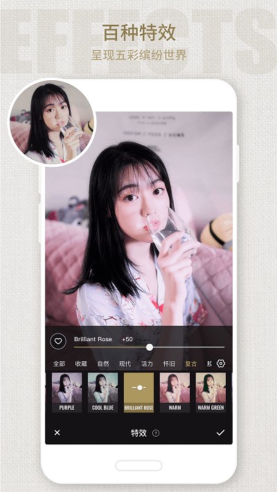 — 多款专业仿真胶片滤镜,模拟经典胶片效果。