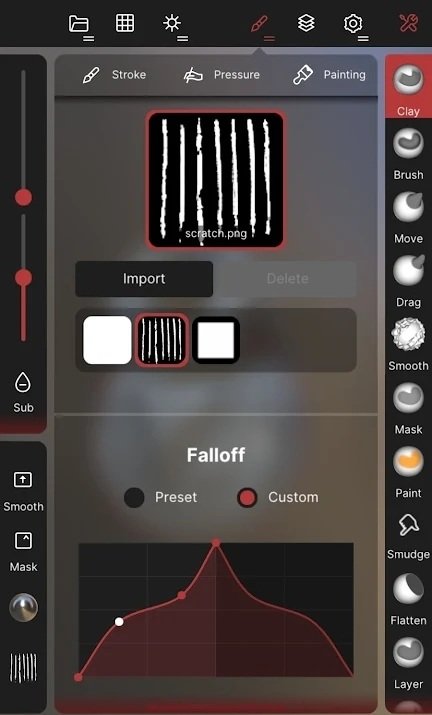 Clay、Flatten、Smooth、Mask 和许多其他画笔可让您塑造您的创作。
