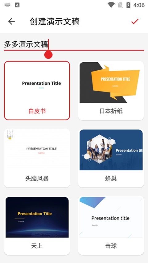 4、随后你可以创建自己所需要的演示文稿并套用下方的模板。