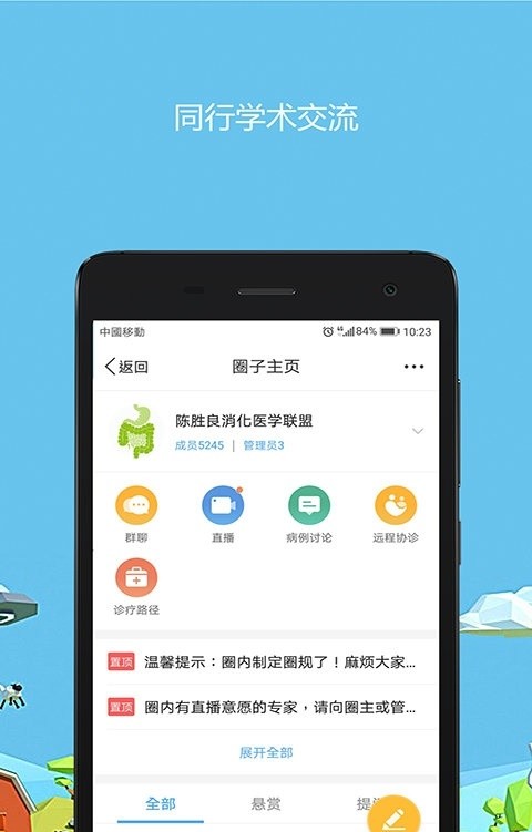4、互动交流平台:支持私信交流、小组讨论等多种交流方式,在线答疑,共同讨论病例和治疗方案。