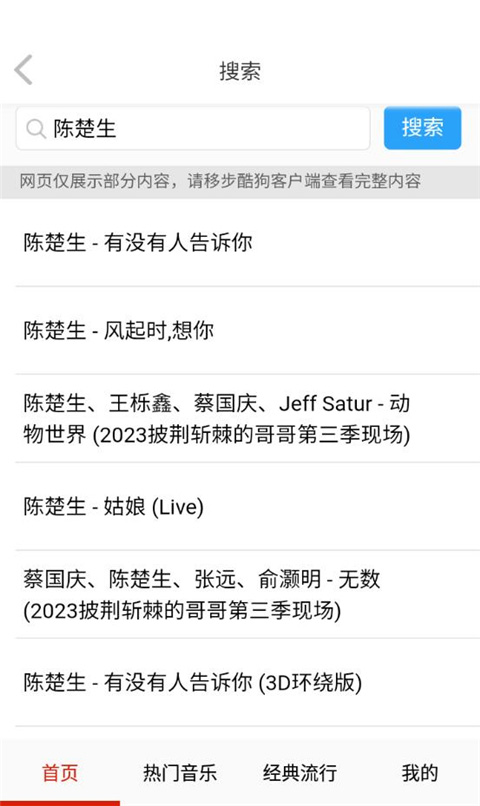 2、在这里可以快速进行搜索,输入关键词都可以找到对应的音乐,极速点播。