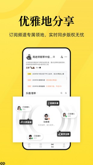 专属领地!乐团指挥or音乐老师?创建不同主题或定位的频道,邀请相匹配的乐手或学生们订阅