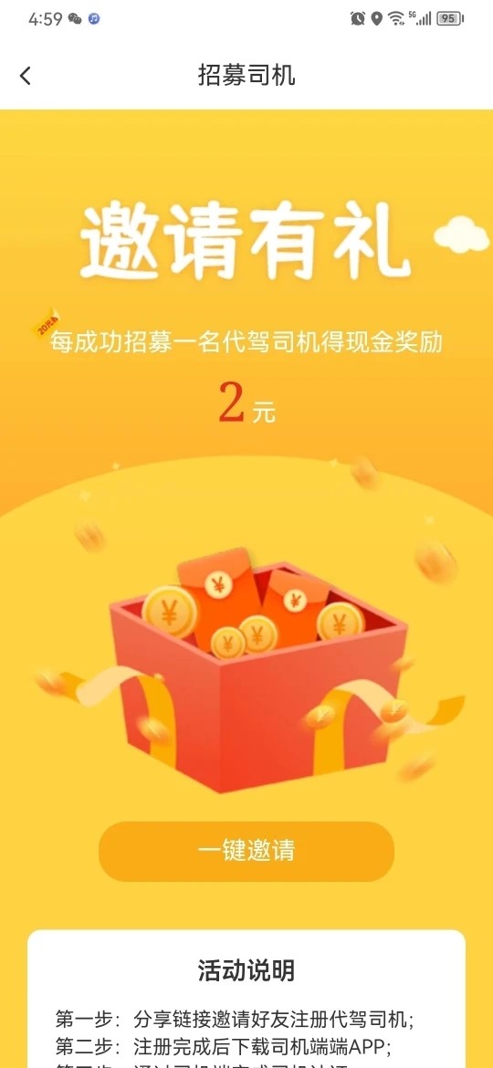 车保优服app是一款专门服务于代驾车主的接单平台,在这里你可以快速注册成为一名代驾司机,一键搜索附近订单让你可以快速抢单一键出车。没有限制接单自由,价格明确收入一目了然,让车主可以利用自己的闲暇时间兼职赚钱,现在推出活动邀请新人注册还能获得现金奖励哦!