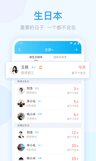 完美支持「公历/农历」生日、纪念日等重要日期提醒,避免忘记重要时刻的尴尬。