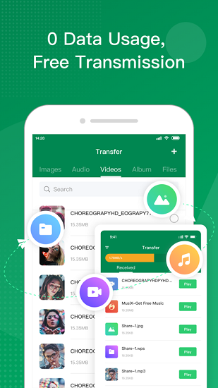 支持多种类型的档案传输 – 联络人,图片,视频,甚至是文件!