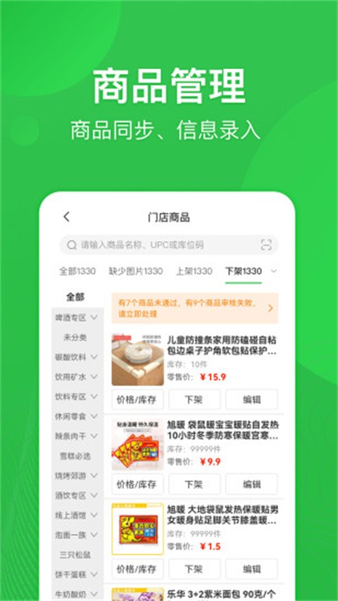 便利店、生鲜超市等商品数量较多的商店可以使用该应用程序更改价格和库存,并且会立即同步到所有平台。