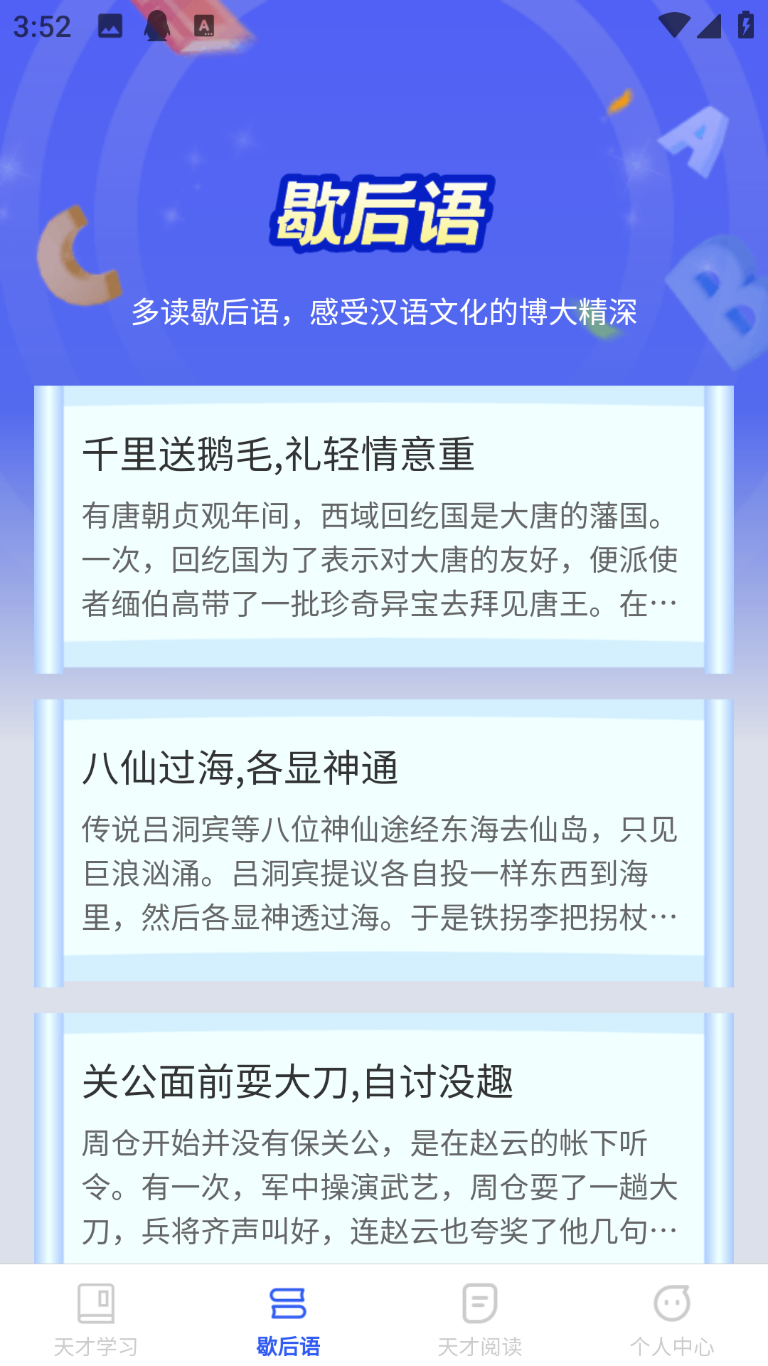 还汇聚了大量经典的歇后语,帮助用户通过互动学习的方式掌握歇后语的意义和用法。