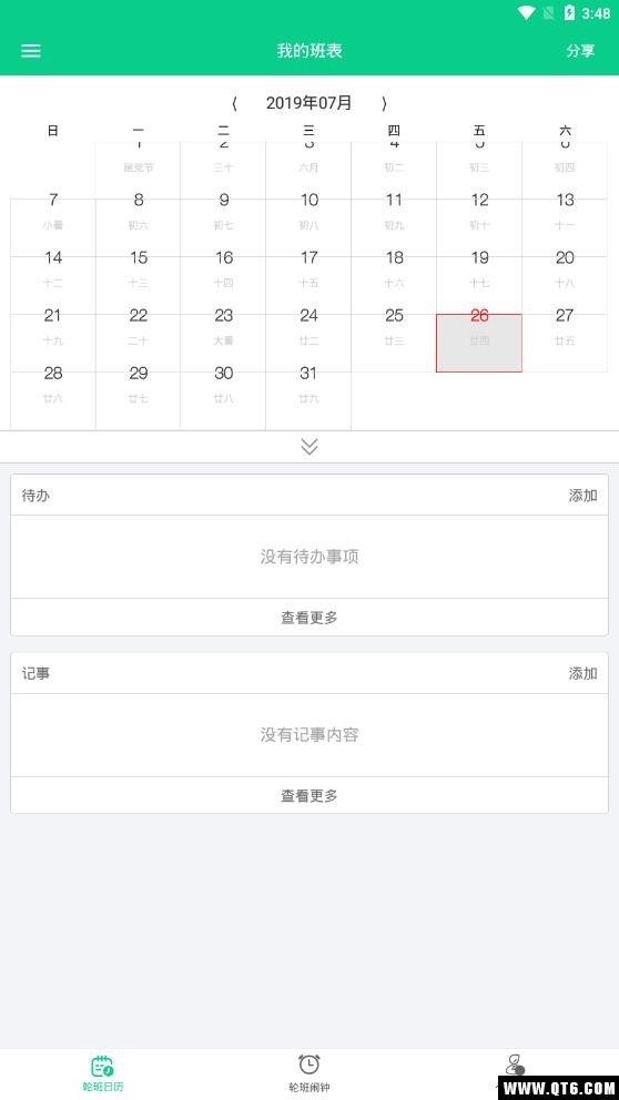 2、轮班日历是一款专为轮班和值班人员设计的软件。 支持手动和定期排班两种方式,快速生成适合自己工作的排班日历,设置根据不同班次自动响铃的排班闹钟,并添加具体备注提醒自己每天的情况。 界面清新简洁,交互简单,无广告,免费。 复杂的轮班周期计算和每天手动设置系统警报将不再是一个令人烦恼的问题。
