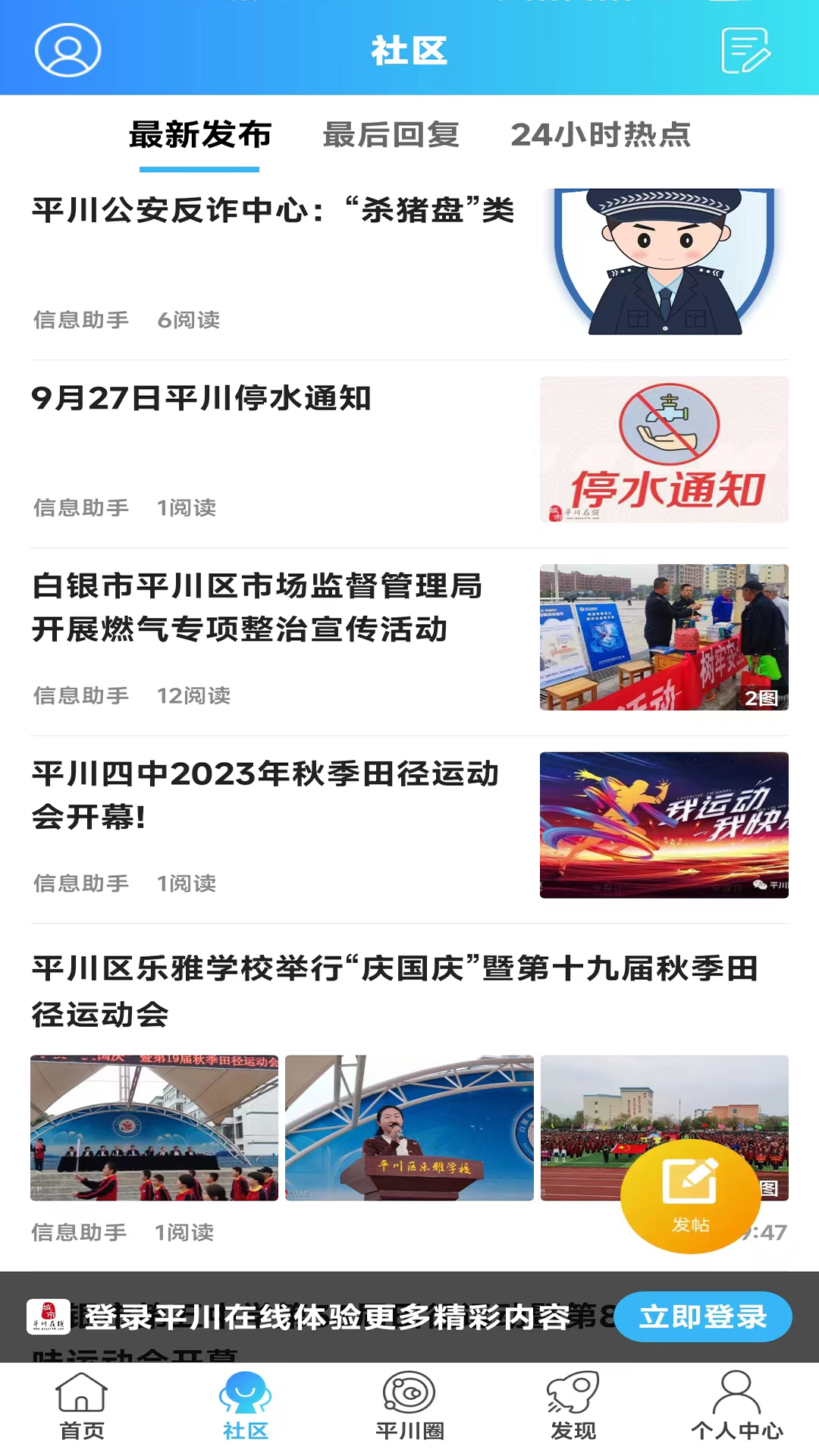 本地资讯新鲜发布,便民信息一键查询,优惠福利及时分享!看资讯,招人才,找工作,找房子,找对象,找优惠!同城生活,平川在线!平川在线自2013年上线以来,已拥有粉丝13万,抖音用户3.3万,快手用户共7.6万。截止目前,旗下共有平川优选、信息圈、人才网、房产网、婚恋网、二手网等多板块,成为平川综合性城市互联网服务商。TL:0943-6687016