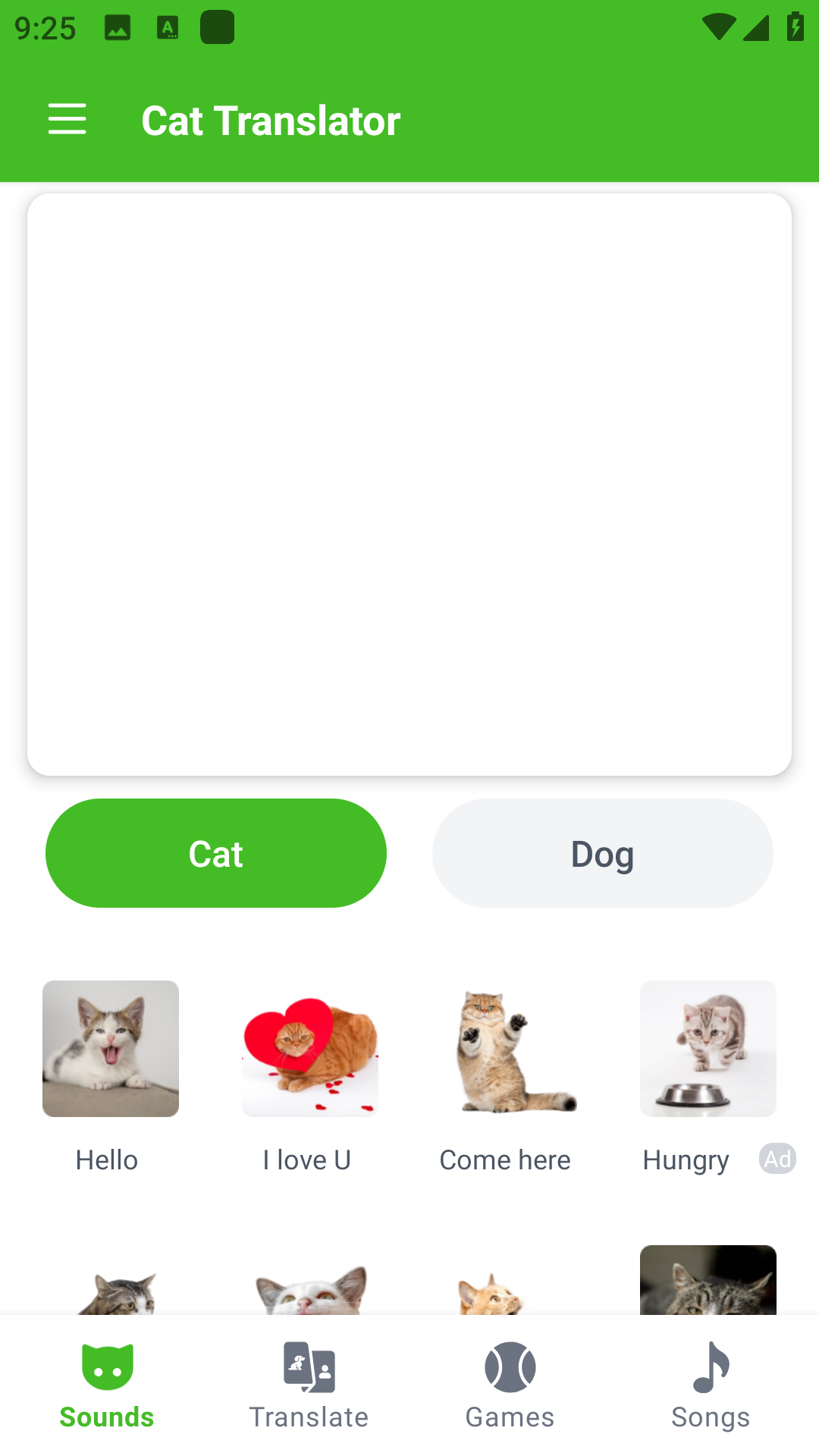 Cat Translator是一款专门为养猫用户打造的翻译工具,支持多种语音线上,让用户可以通过这款软件和自己养的宠物猫进行交流沟通。真正做到了人猫交流,让你可以更好的和自己的猫进行互动,还有多种不同的翻译模式可以选择,快来下载体验吧!