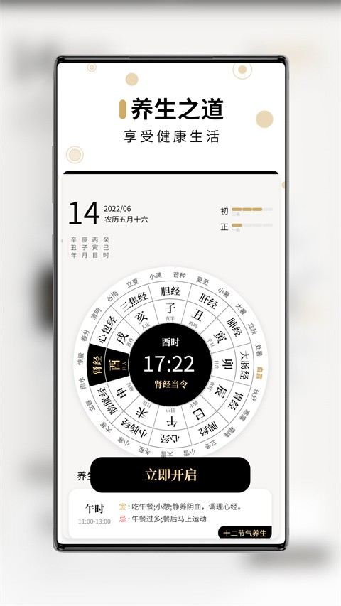 基于《黄帝内经》中医养生理论,提供24节气、12小时养生建议,帮助您随天气保养身体。