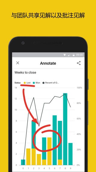 使用触摸屏轻松注释报告,并通过新的见解吸引团队成员的注意。 直接从应用程序共享实时报告和仪表板,使整个团队保持在同一页面上。
