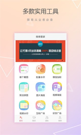 1、有大量实用工具可供您使用! 在微信商务管理中,您可以批量处理图片、文字、视频的个性化水印,设计精美的产品海报,去除短视频水印。 还可以快速拼出漂亮的拼图并创建聊天对话!