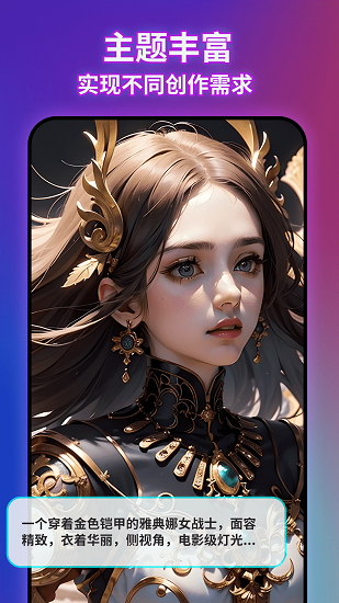 我们提供了多种艺术风格,比如让梵高画二次元美少女、蒙娜丽莎化身古风美女风格、还有让宫崎骏用工笔画还原哈尔的移动城堡等等。每种画风都具有独特的特征和氛围,让你精准定位到自己想要的绘画风格。无需绘画技巧,简单描述你的想法,即可看到专属于你自己的作品。