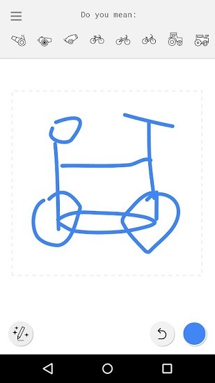 AutoDraw手机版可以辅助大家进行绘画,你可以画出物品的大致样式,软件会自动识别,会显示对应的图像,让大家可以直接选用已经画好的图形。线上的自动识别识别技术非常的强大,让大家每次画各种物体都非常的轻松。