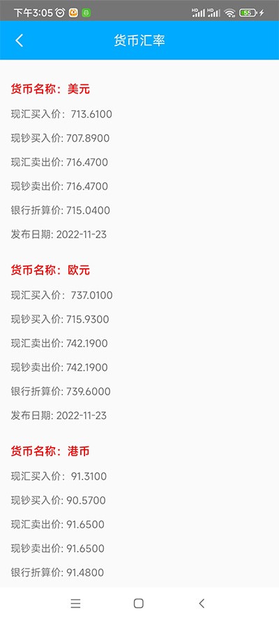 4、货币汇率:包含美元、欧元、日元等国家的详细汇率信息。