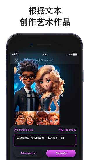 这款强大的AI图片生成器经过数百万张网络图像的训练,可以在几秒钟之内,将你梦想中的画面转变成视觉艺术。只需输入你的要求并上传一张图片,即可开始创作AI艺术作品。