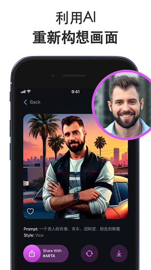 AI Arta手机版app可以让大家免费生成超多的图像,带来了各种AI绘画模型,都是可以根据喜欢的风格来选择合适的模型进行使用,每次输入关键词即可快速的进行生成,都是非常清晰的图像,能够根据需求来进行保存了。