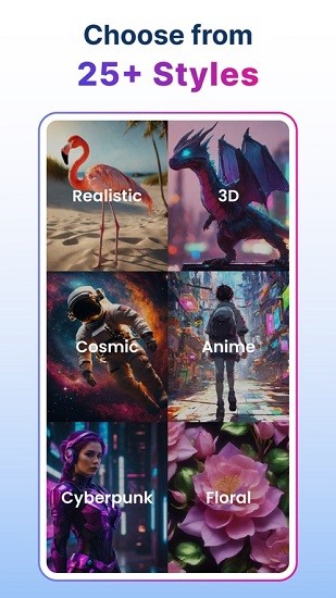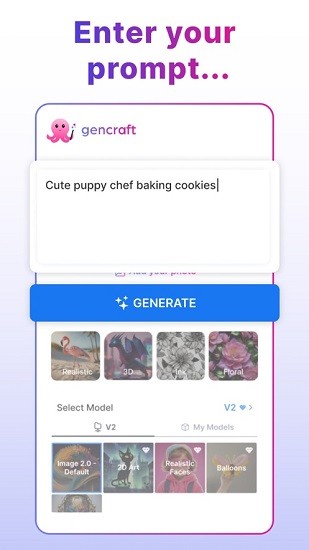 Gencraft手机版可以让大家自由的生成各种AI图像,这里收录了众多优质的AI绘画模型,想怎么进行使用都是支持的,让大家喜欢二次元画风还是三次元画风都可以选择合适的模型,输入几个关键词就可以快速的生成图像了。