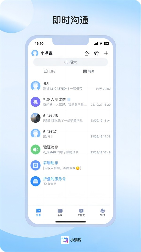 小满说app企业聊天沟通平台,专为企业高效协作与沟通而生。我们致力于打造一个简单、安全、智能的企业沟通环境,助力企业提升工作效率,加强团队协作。采用简洁、直观的界面设计,让您在使用过程中轻松上手。无论是文字聊天、语音通话,还是文件分享,操作都简单快捷,提高工作效率。下载小满说app就能开始体验啦!