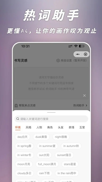 找灵感功能,可以让你用简单的词汇搜索Ai生成的精美画作,来看看与你灵感相似的作品是什么样的吧!