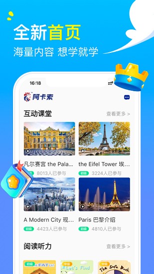 阿卡索英语app专门为英语爱好者打造的平台,在这里可以自由学习英语,支持多年龄段的人群使用,每天可以全方位的学习英语,让大家熟能生巧掌握超多的英语单词,学习各种语法以及练习英语口语,让大家提高英语能力。