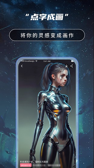 让文字展现出艺术的气息,只需要你输入一句话,AI自动为你生成精美画作,可以给你画出所描述的画作。