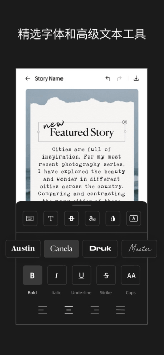 unfold是一款故事制作软件,它为您提供了超过300个屡获殊荣的故事设计,您还可以使用易于使用的设计、字体和工具为您创建的故事添加文字和拼贴画。 而且软件库还支持包括Clasico、Film Frames、Ripped Paper、Digital Wave、Journal、Artist、Moodboard和Plastic在内的集合,这要花你好几块钱长达一个小时的工作几分钟就可以完成,非常高效、便捷。此外unfold使用新字体,每种字体都经过精心挑选,让您创建的故事看起来更加美观,有需要的用户直接下载就可以开始使用了。
