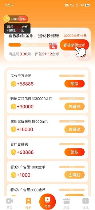 4、观看短剧的同时,你还可以轻松赚取金币,奖励不断。