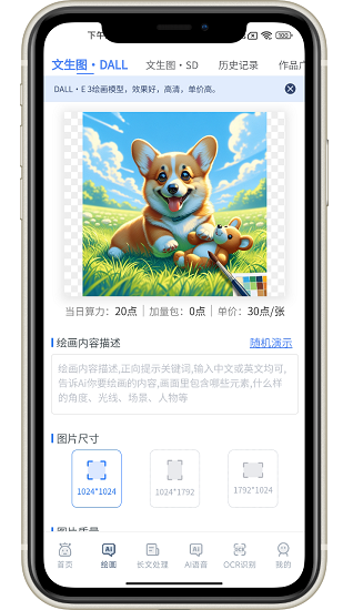 Ai绘画功能采用SD框架,融入了众多主流绘画模型,支持中英文自定义输入,生成的作品可展示到广场。也可以把作品分享给别人来进行二次创作和修改。作品广场的全部作品均支持二次创作。绘画历史记录和内容将长期保存,可随时查看和修改。