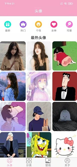 3、日常可以免费下载使用众多的头像和壁纸,在各个平台及时更换头像了。