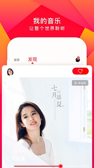 〖首页〗{发现}尼酷音乐为您提供了一个音乐社交软件,在这里,您可以听到和分享来人士与众不同声音和作品,您参与录制的歌曲,可以分享到发现板块让更多的人听到你的声音。