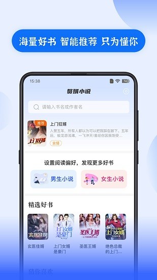 赘婿小说软件可以让大面免费看各种风格的小说资源,每天都在实时的进行更细中,能够根据自己的喜好来进行筛选。平台上遇到喜欢的小说可以收藏起来,每次更新后都会推送提醒,想怎么进行使用都可以的,操作都很轻松。