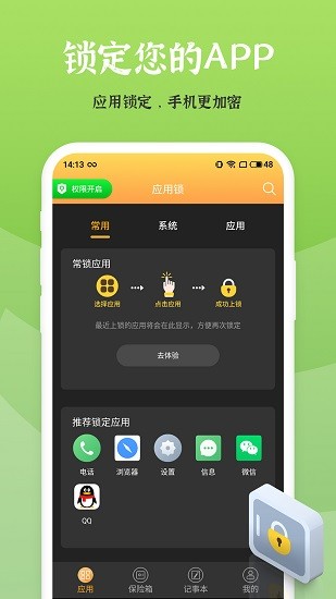 应用安全锁app可以帮助大家保护自己的隐私,想怎么进行设置隐私,空间的密码都可以的,能够导入应用以及文件进行加密隐藏,都是可以轻松导入到私密空间,日常使用起来都是非常流畅的,想怎么进行使用都可以的。