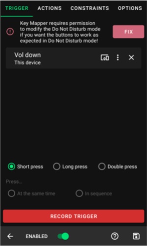 你只需要在Android 6.0+上做到这一点。如果您想要重新映射音量按钮并在启用“勿扰模式”时使用它们,您应该授予按键映射器权限来执行此操作。如果您需要这样做,键映射器将显示上图中的错误。