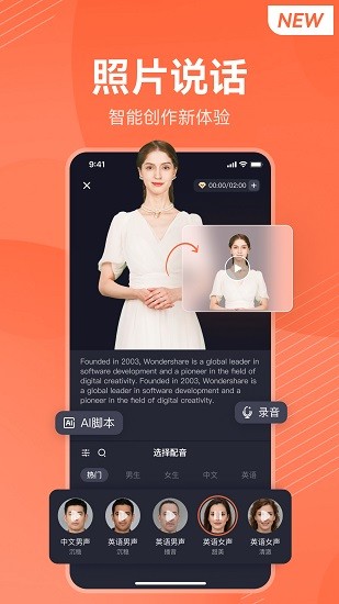 万兴播爆app可以让大家在这里定制自己的专属数字人,让大家日常制作各种需要出镜的短视频都是无需拍摄的,直接用自己的数字人录制视频,线上数字人连声音也是可以模仿,输入文字让数字人自由的录制短视频,很方便。
