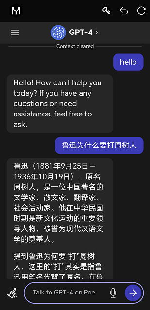 - 已接入Poe会员高速GPT4