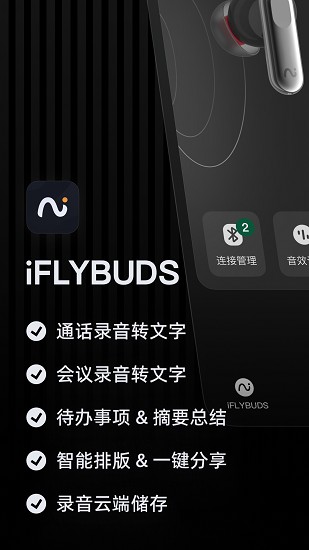 iFLYBUDS手机版可以让大家在手机上轻松连接智能耳机设备,每天使用智能耳机都是非常方便的,在这里可以进行录音,能够将录音转换为文字显示,每次都可以进行排版的,让大家快速将文字进行导出,还可以将录音文件上传云端。