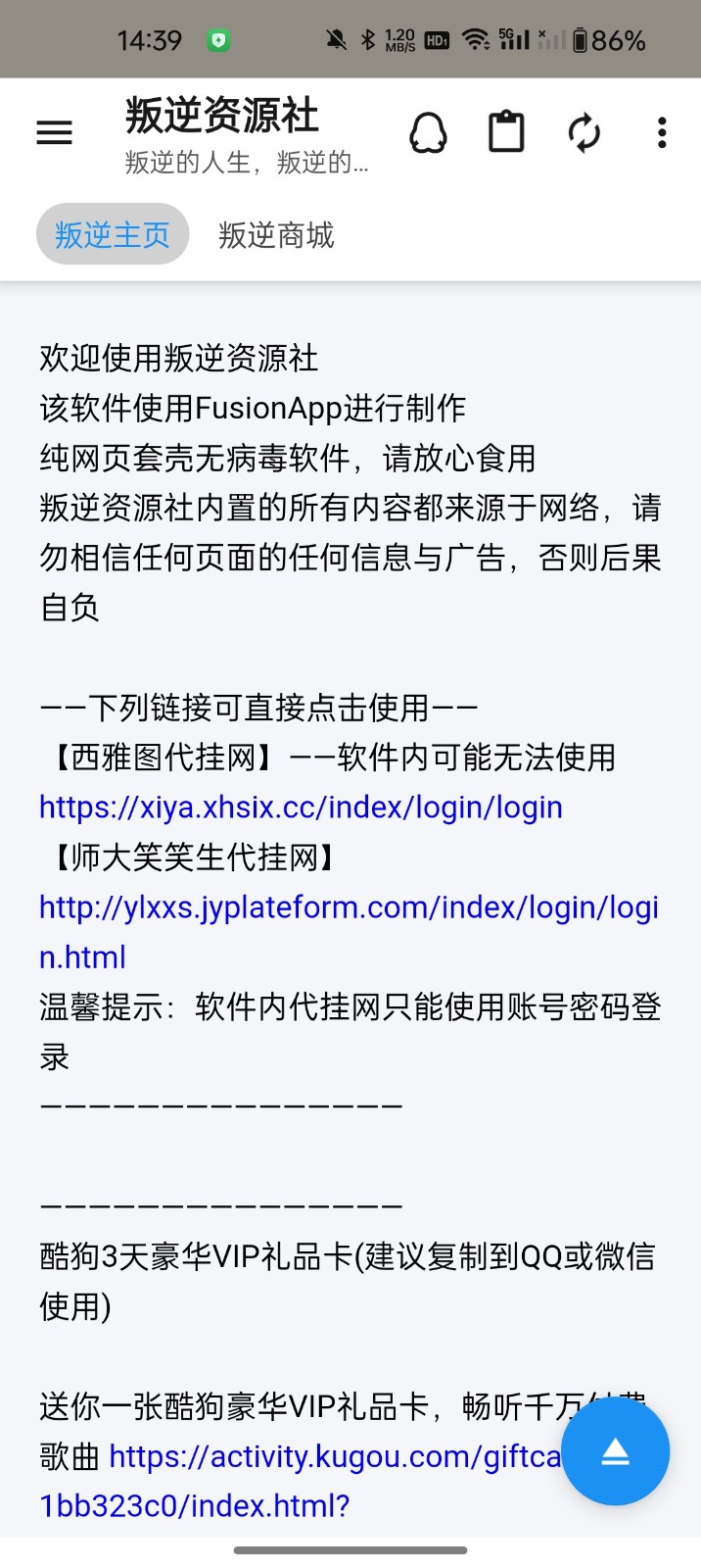 1、叛逆资源社App拥有大量优质软件资源,涵盖游戏盒、音乐库以及各类办公学习工具,全面满足用户多样化的需求。