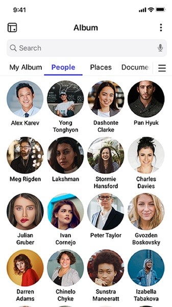 QuMagie AI 人工智能影像辨识引擎可分析NAS 上照片中的人物脸部特征,自动整理出专属人物相簿,您可在手机上点选人物相簿浏览特定人物照片。