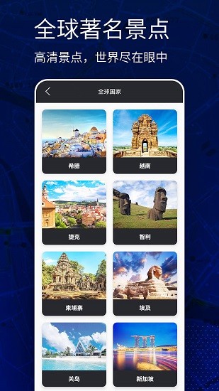 3、全球景点街景地图随意看, 自由切换国家城市,足不出户就实现身临其境般轻松环游世界。