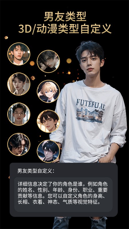 3、你可以为虚拟男友设置形象,无论是三次元还是二次元画风都行。