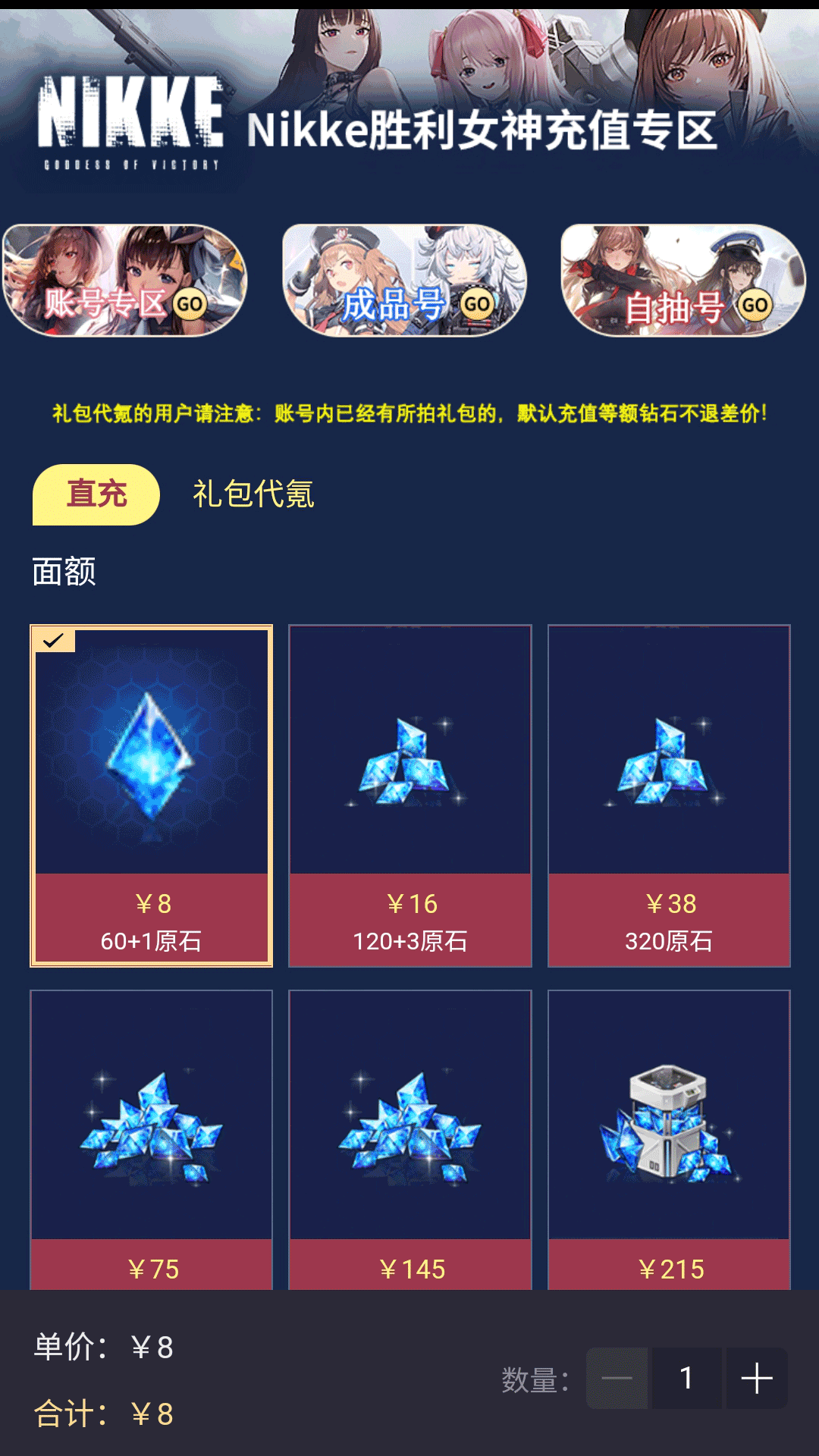 2、各种各样的游戏礼包都可以进行购买,选择对应的产品快速下单。