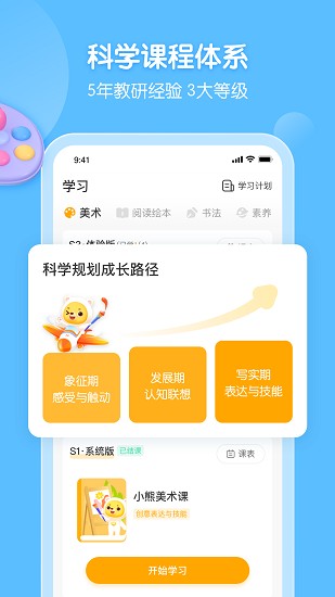 小熊美术官方正版app为儿童们带来了一站式的艺术教育平台,家长可以让孩子们从小开始培养艺术的细胞,让孩子们爱上艺术,拥有非常专业的课程可以进行报名,想什么在线学习都行的,家长们可以为孩子合理安排学习时间。